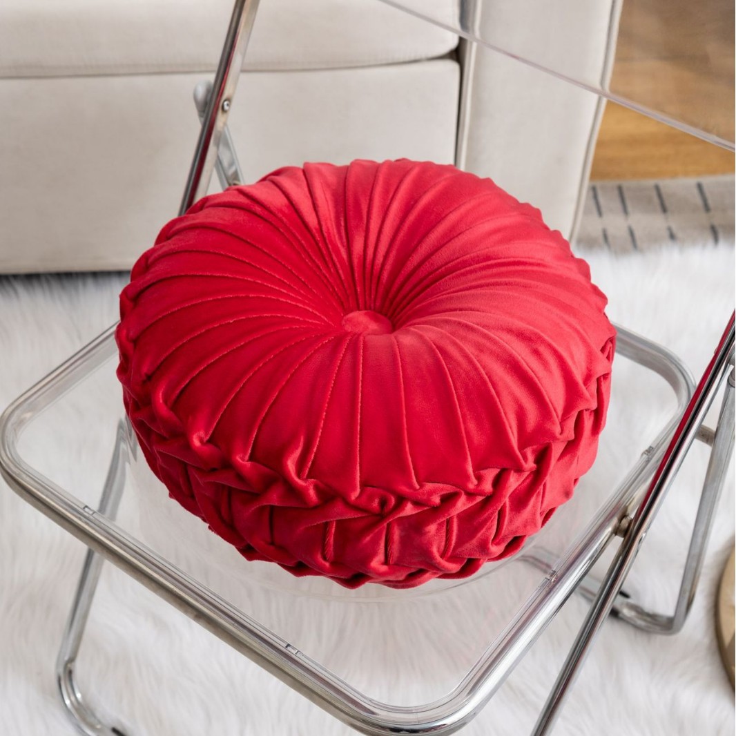 Tags: velvet pumpkin pillow, round pleated cushion, decorative throw pillow, luxury velvet home decor, floor pillow, 14 inch accent cushion, vintage style pillow