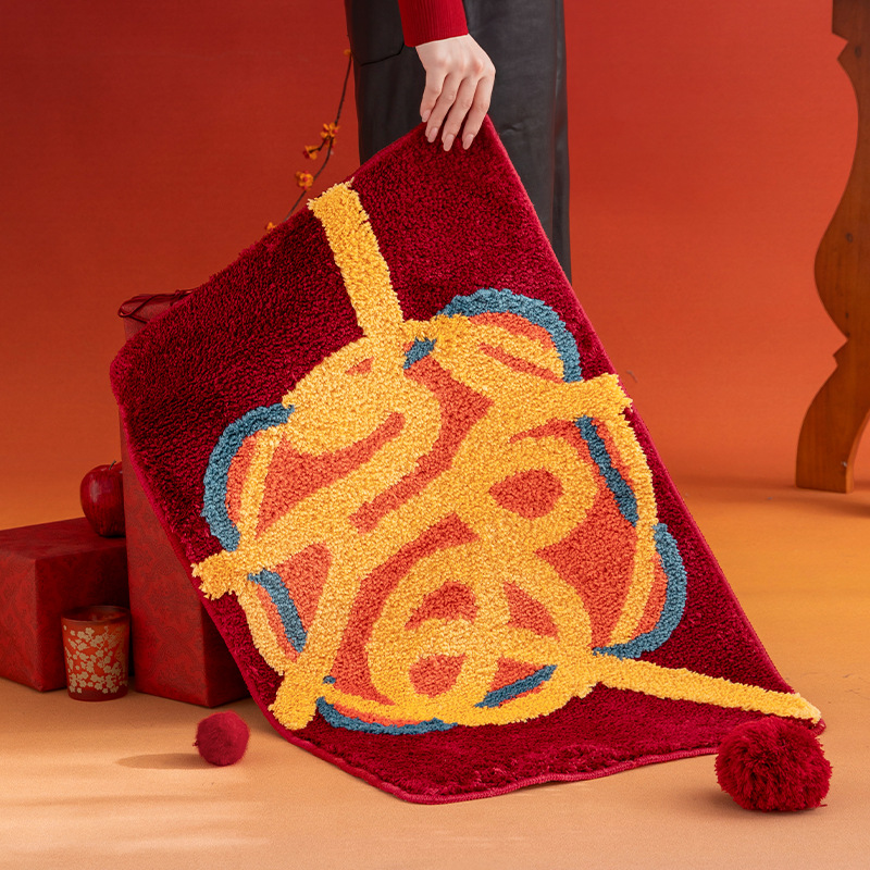 Tags: Chinese New Year decor, red bath mat, lucky floor rug, non-slip doormat, Lunar New Year gift, modern Fu mat.
