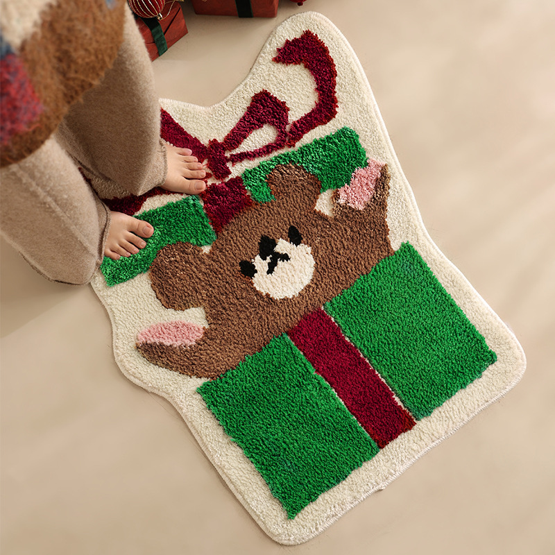 Bring the Holiday Magic to Your Feet!Celebrate the 2025 winter season with our exclusive Cute Bear Gift Box Rug. Designed for those who love aesthetic room decor and cozy vibes, this irregular-shaped plush mat is more than just a floor covering—it's a warm hug for your home.