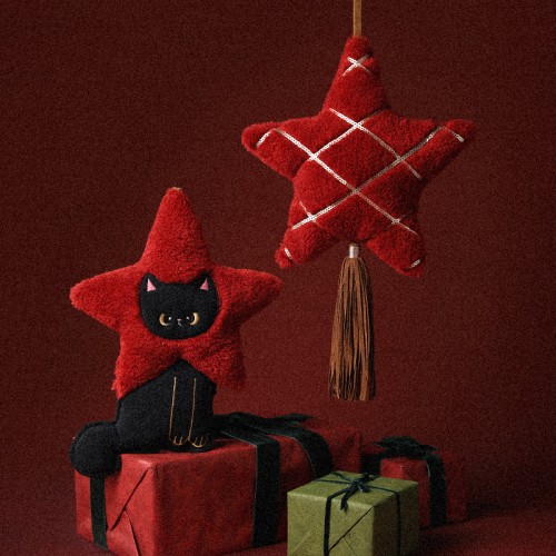 Infuse your home with sophisticated holiday cheer using our Year of the Horse Creative Plush Ornament Collection. Designed to balance traditional festive warmth with a modern, high-end aesthetic, these pieces are more than just decorations—they are artisanal accents that transform any room into a celebratory sanctuary. The collection features a whimsical black cat nestled within a vibrant red star, alongside a matching sequined star adorned with a luxurious silk tassel.