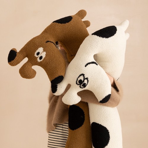 Made from premium high-pile bouclé fabric, the outer shell offers a cozy, shearling-like texture that is incredibly gentle on the skin. The interior is generously packed with high-elastic cotton, ensuring the pillow remains plush yet supportive even after long-term use. Whether you are looking for a comforting "sleeping buddy" for a child or a functional decorative bolster for a minimalist sofa, this dog-shaped cushion blends playful design with ergonomic utility. Durable, huggable, and undeniably cute, it is an ideal gift for pet lovers or a treat for your own cozy sanctuary.
