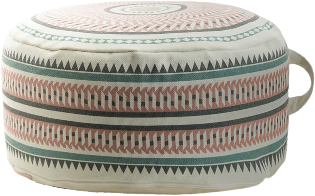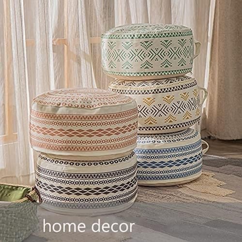 Bring warmth, texture, and bohemian style to your home with the MOCOFO Unstuffed Round Pouf Cover. Crafted with a vibrant geometric pattern in cheerful yellow tones, this boho-style ottoman cover adds an instant pop of color and global charm to your living room, bedroom, or patio. Measuring 18x18x8 inches, this versatile floor pouf cover is perfect for creating a cozy and personalized footstool, seat cushion, or floor pillow.