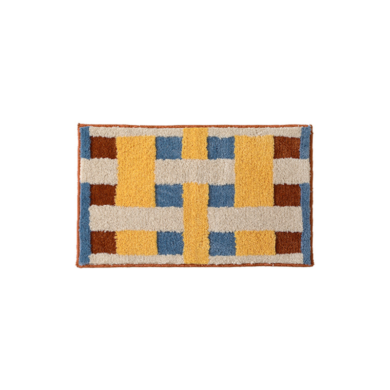 Tags: woven grid bath mat, microfiber door rug, absorbent bathroom mat, non-slip entry rug, quick-dry shower mat, retro geometric carpet, dirt-resistant floor mat.