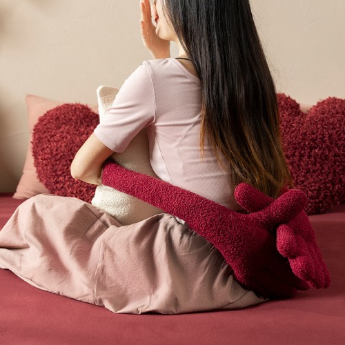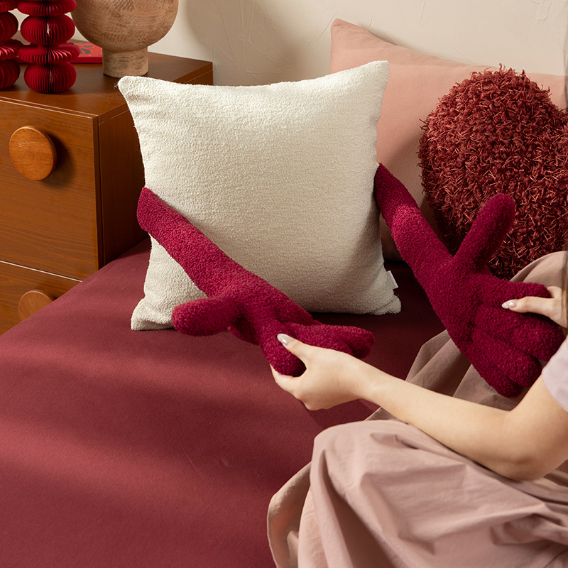 What sets this pillow apart is its distinctive 3D arm-and-hand design, which elegantly wraps around the cushion to simulate a warm, supportive embrace. Crafted from premium high-density bouclé fabric, it offers a rich, pebbled texture that is both incredibly soft to the touch and visually stunning. Whether used as a festive "bed-pressing" ornament (Ya Chuang) or as a playful accent on your living room sofa, its plush filling provides excellent lumbar support. This pillow isn't just a decorative item; it's a symbol of intimacy and care, making it the perfect thoughtful gift for newlyweds or a charming addition to your own "Happily Ever After."