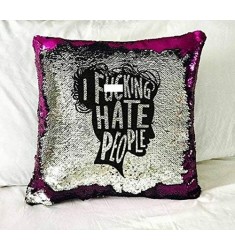 Mocofo Glitter hate red Funny Sequin Pillow Cover – Reversible Color-Changing Decorative Sham