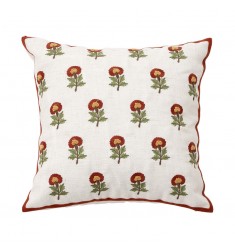 MOCOFO Embroidered Floral Throw Pillow Cover with Tassels - Decorative Linen Cushion for Sofa, Bed, Living Room